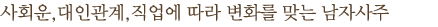 ÀϹÝÀûÀ¸·Î ¿©¼ºÀº »ìÇ®ÀÌ »çÁÖ¸¦ Ç®¾î »çÁÖÀûÀÎ ¼º°Ý°ú ȯ°æÀÌ µÚ¹Ù²î´Â ´ë¿îÀ» °Þ´Âµ¥ ¹ÝÇÏ¿© ³²ÀÚ´Â ¾î¶² Á÷Á¾ Á÷¾÷ »ç¶÷¿¡ µû¶ó ¹Ù¶÷±â°¡ »çȸÀû ¼º°ø¿îÀÌ ¸Â¹°·Á µ¹¾Æ°¡´ÂÁö¸¦ Ç®¾îº¸´Â ¿ªÇÐÀÇ ´ë¸í¿î Ç®ÀÌÀÔ´Ï´Ù.